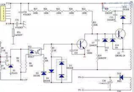 1、先用電阻測(cè)量法測(cè)量開關(guān)管Q1有無擊穿短路現(xiàn)象,電流取樣電阻R4有無開路。電路易損壞元件為開關(guān)管,當(dāng)其損壞后,R4因受沖擊而阻值變大或斷路。Q1的G極串聯(lián)電阻、振蕩芯片PC1往往受強(qiáng)電沖擊而損壞,須同時(shí)更換;檢查負(fù)載回路有無短路現(xiàn)象,排除。