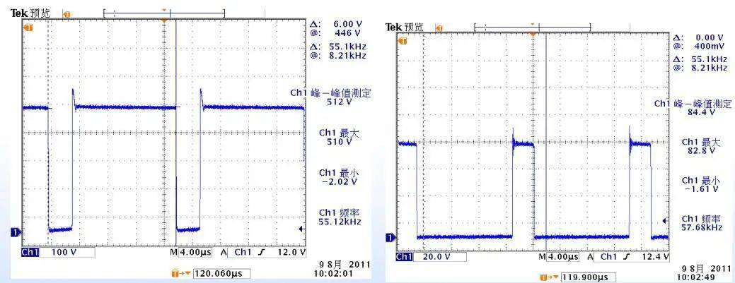 超高頻諧振噪聲主要來源于高頻整流二極管反向恢復(fù)時二極管結(jié)電容、功率器件開關(guān)時功率器件結(jié)電容與線路寄生電感的諧振,頻率一般為1~10MHz,通過選用軟恢復(fù)特性二極管、結(jié)電容小的開關(guān)管和減少布線長度等措施可以減少超高頻諧振噪聲。