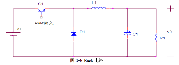 由(2-5)式可知,通過改動開關(guān)管的占空比能夠控制輸出平均電壓的大小。由于占空比總是小于1,所以V0總是小于V1,所以說Buck電路是降壓電路。