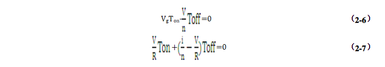 現(xiàn)在來分析它的工作原理:當(dāng)Q導(dǎo)通時,二極管截止,根據(jù)電路知識可知此時VL=Vg,ic=-V/R;當(dāng)Q截止時,二極管D導(dǎo)通,VL=-V/n,ic=i/n-V/R。由伏秒平衡和電容充放電平衡可得: