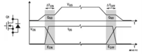 圖10.降壓轉(zhuǎn)換器中頂部FETQ1的典型開(kāi)關(guān)電源波形和損耗