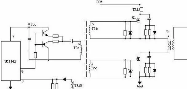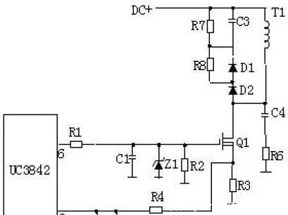R4、C3、R5、R6、C4、D1、D2組成緩沖器,和開關(guān)電源MOS管并接,使開關(guān)電源管電壓應(yīng)力削減,EMI削減,不發(fā)生二次擊穿。在開關(guān)電源管Q1關(guān)斷時(shí),變壓器的原邊線圈易發(fā)生尖峰電壓和尖峰電流,這些元件組合一同,能很好地吸收尖峰電壓和電流。從R3測(cè)得的電流峰值信號(hào)參加當(dāng)前工作周波的占空比操控,因此是當(dāng)前工作周波的電流約束。當(dāng)R5上的電壓到達(dá)1V時(shí),UC3842停止工作,開關(guān)電源管Q1當(dāng)即關(guān)斷。R1和Q1中的結(jié)電容CGS、CGD一同組成RC網(wǎng)絡(luò),電容的充放電直接影響著開關(guān)電源管的開關(guān)電源速度。R1過小,易引起振動(dòng),電磁干擾也會(huì)很大;R1過大,會(huì)降低開關(guān)電源管的開關(guān)電源速度。Z1通常將MOS管的GS電壓約束在18V以下,然后保護(hù)了MOS管。