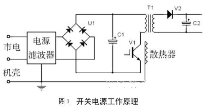 一般,對開關(guān)電源電磁兼容功能發(fā)生影響的要素詳細表現(xiàn)在以下幾點:榜首,外部噪聲影響開關(guān)電源,比如:使用電網(wǎng)傳輸進入開關(guān)電源的差模噪聲、共模噪聲干擾開關(guān)電源操控電路等等;第二,開關(guān)電源輸進變流回路的非線性形成的電流波形畸變,形成的電流諧波分量污染電網(wǎng);第三,開關(guān)電源的高頻逆變回路呈現(xiàn)的電磁噪聲。開關(guān)電源類型多元化,依據(jù)電路結(jié)構(gòu),可以將其劃分紅直流改換時以及串聯(lián)式;依據(jù)鼓勵辦法,可以將其劃分紅他人鼓勵式和自我鼓勵式;依據(jù)開關(guān)管的組合,可以將其劃分紅推挽以及單管等等??墒侨魏晤愋偷拈_關(guān)電源,都是借助開關(guān)器材關(guān)和開的時間比對傳輸電壓大小進行操控,遍及采用的操控辦法包含兩種,一是脈沖寬度調(diào)制,二是脈沖頻率調(diào)制。[2]由于開關(guān)開關(guān)電源開關(guān)頻率超過幾十乃至幾百千赫,電路的電壓改變率以及電流都說是適當大的,所以高頻整流器材以及開關(guān)器材的電流尖峰形成的諧波、高頻電壓器的電磁輻射形成的干擾等噪聲都是適當強的電磁干擾源。這些電磁干擾信號跟著開關(guān)頻率的提升、輸出功率的加大而明顯加強,會使用電源線和差模與共模的方向向外面?zhèn)鲗?,也輻射到附近空間,威脅其他電子設(shè)備的安全安穩(wěn)運轉(zhuǎn)。開關(guān)電源作業(yè)原理簡圖如圖1所示,表明開關(guān)電源中電磁噪聲的呈現(xiàn)和耦合途徑。