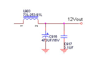 因?yàn)檩敵?/span>干擾的頻譜相當(dāng)豐富,從幾十赫茲到幾十兆赫茲均含分量。因?yàn)樵诟哳l的情況下,濾波電容等效由純電容(C)、等效串聯(lián)電阻(RES)和等效串聯(lián)電感(LES)構(gòu)成的串聯(lián)電路。在作業(yè)頻率f超過(guò)電容器的自諧振頻率fr時(shí),電容器就起到電感的作用。值大的濾波電容對(duì)低頻干擾比較敏感,相反,值小的濾波電容吸收高頻干擾的作用比較好。因此不能光采用大電解電容濾波C916,還有必要加接自諧振頻率很高的陶瓷電容器C917。