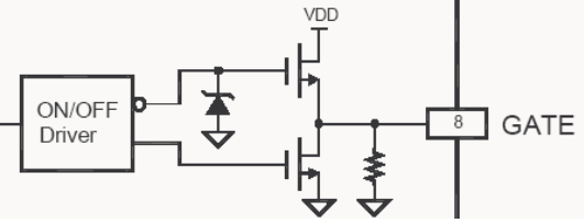 Gate:PWM脈沖輸出端。圖騰柱(即推拉輸出電路)輸出極驅(qū)動(dòng)功率開(kāi)關(guān)管。