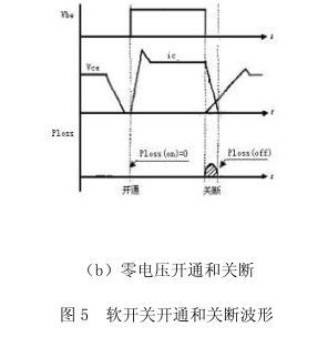 從前面的分析可以知道,開關(guān)損耗包括開通損耗和關(guān)斷損耗。利用軟開關(guān)技術(shù)可以減小變換器的開通損耗和關(guān)斷。軟開關(guān)的開通和關(guān)斷波形如圖5所示。