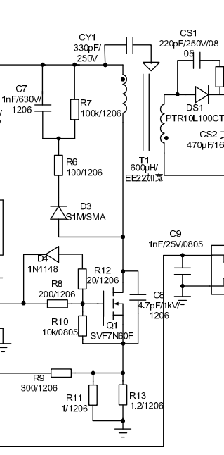 這是控制器用來直接連接高壓的采樣分壓電阻,如果間距不符合要求,很有可能就會(huì)耐壓不夠擊穿。 貼片電阻器也是有耐壓的,不過耐壓不夠就要加大封裝。