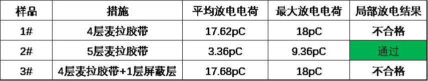可以看到,僅有2# 5層麥拉膠帶的變壓器樣品通過(guò)了局部放電測(cè)試。