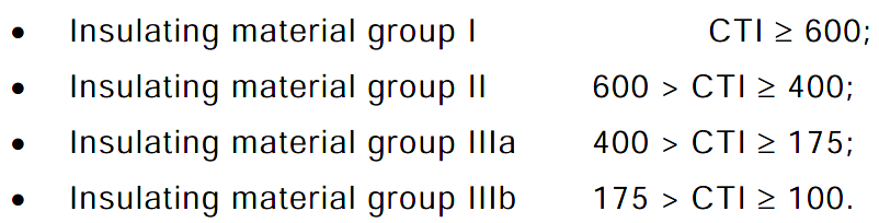 2、以變壓器設(shè)計(jì)中用到的麥拉絕緣膠帶和骨架為例,如圖12所示,可以使用較高CTI(相對(duì)起痕指數(shù))等級(jí)的絕緣材料,可以有效的滿足加強(qiáng)絕緣的爬電距離要求和降低發(fā)生局部放電的幾率。絕緣材料的CTI等級(jí)分類如圖13所示,CTI>600是目前最好的絕緣材料。