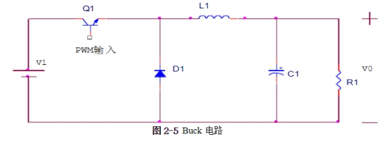 由(2-5)式可知,經(jīng)過改動(dòng)開關(guān)管的占空比可以操控輸出平均電壓的巨細(xì)。因?yàn)檎伎毡瓤偸切∮?/span>1,所以V0總是小于V1,所以說Buck電路是降壓電路。