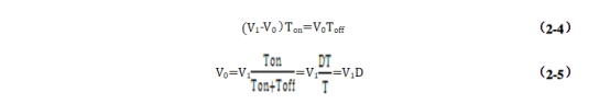 現(xiàn)在來講講開關(guān)電源的電路作業(yè)原理:Boost電路即升壓電路,當(dāng)Q1導(dǎo)通時(shí),能量從輸入電源流入貯存于電感L1中,此刻二極管D1反偏,負(fù)載由濾波電容C1供應(yīng)能量,將C1中貯存的電能(C1V02/2)釋放給負(fù)載R1。當(dāng)Q1截止時(shí),電感L1中電流不能驟變,此刻二極管D1導(dǎo)通,電感中貯存的能量(L1I2/2)經(jīng)二極管D1,流入電容C1,并供應(yīng)負(fù)載R1。根據(jù)電感的伏秒平衡,在一個(gè)周期內(nèi)電感的伏秒乘積和為零。假如Q1導(dǎo)通時(shí)刻Ton越大,那么Q1截止時(shí)提供應(yīng)負(fù)載的電壓就會(huì)越大。下面經(jīng)過詳細(xì)的計(jì)算來加深了解:根據(jù)伏秒平衡有式(2-2)、(2-3)。