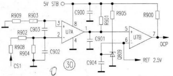 3、保護(hù)回路:U1芯片自身和3腳外圍電路構(gòu)成過(guò)流保護(hù)回路;N1繞組上并聯(lián)的D1、R1、C9元件構(gòu)成了開(kāi)關(guān)管的反向電壓吸收保護(hù)電路,以供給Q1截止時(shí)的反向電流通路,確保Q1的作業(yè)安全;實(shí)質(zhì)上穩(wěn)壓回路的電壓反響信號(hào),也可看作是一路電壓保護(hù)信號(hào)——當(dāng)反響電壓崎嶇達(dá)一定值時(shí),電路實(shí)施停振保護(hù)動(dòng)作;24V的輸出端并聯(lián)有由R18、ZD2、單向晶閘管SCR組成的過(guò)壓保護(hù)電路,當(dāng)穩(wěn)壓電路反常,引起輸出電壓反常上升時(shí),穩(wěn)壓二極管ZD2的擊穿為SCR供給觸發(fā)電流,SCR的導(dǎo)通形成一個(gè)“短路電流”信號(hào),強(qiáng)制U1內(nèi)部保護(hù)電路發(fā)生過(guò)流保護(hù)動(dòng)作,電路處于停振情況。