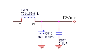 由于輸出攪擾的頻譜適當(dāng)豐厚,從幾十赫茲到幾十兆赫茲均含分量。由于在高頻的情況下,濾波電容等效由純電容(C)、等效串聯(lián)電阻(RES)和等效串聯(lián)電感(LES)構(gòu)成的串聯(lián)電路。在作業(yè)頻率f超越電容器的自諧振頻率fr時(shí),電容器就起到電感的效果。值大的濾波電容對(duì)低頻攪擾比較靈敏,相反,值小的濾波電容吸收高頻攪擾的效果比較好。因而不能光選用大電解電容濾波C916,還有必要加接自諧振頻率很高的陶瓷電容器C917。