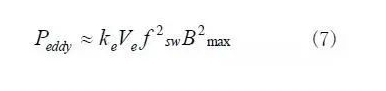 渦流損耗比磁滯損耗小得多,但隨著作業(yè)頻率的進步而敏捷增加,如式(7)所示。