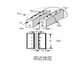 當(dāng)兩個相鄰導(dǎo)體流過方向相反的電流時,相互之間會發(fā)生磁動勢,則磁動勢在對方導(dǎo)體中會發(fā)生渦流,引起損耗。
